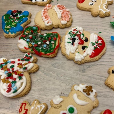 I accidentally bought these as a pick up thinking they were the kind that you bake yourself that Target usually carries. These are AWFUL hard as a rock and taste horrible. Please next holiday season bring back the ones we bake ourselves! I gave one star just because the kids had fun with decorating them with our tradition of cookie decorating, hit coco and holiday movie day together. These are not edible unless you have no taste buds,lol. These should have been 5.99 not 15.99 despite being on sale even!
