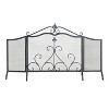 This 3-panel folding fireplace screen blends safety and decorative appeal through an elegant arched silhouette and refined metal scrollwork. Crafted from durable iron, it features tightly woven metal mesh that helps contain sparks while allowing proper airflow. The classic fleur-de-lis motif and European-inspired detailing transform a practical safety accessory into a sophisticated focal point. With its hinged, foldable structure, the screen adapts easily to different fireplace openings and room layouts, providing dependable protection while enhancing living rooms or bedrooms with timeless character and functional design.