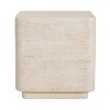 - MODERN STYLE: Featuring a clean, square silhouette and a warm travertine-inspired finish, this side table delivers a refined modern look that complements contemporary, minimalist, or rustic interiors and sheltered outdoor spaces.