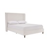 - WINGBACK: This upholstered bed features a tall headboard with a stylish wingback design, adding both elegance and functional comfort. The winged sides not only enhance its contemporary appeal but also provide a cozy, draft-free sleep environment.