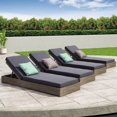 Christopher Knight Home Ian Acacia Wood Armless Adjustable Chaise Lounge with 4" Thick Cushion
