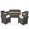 Christopher Knight Home Khaden Outdoor Wicker 7 Seater Sofa and Club Chair Chat Set with Fire Pit