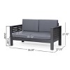 Seating Piece 1: Patio Loveseat: 27.75 inches (H) x 56.5 inches (W) x 27.75 inches (D), 25.75 inches (seat depth)