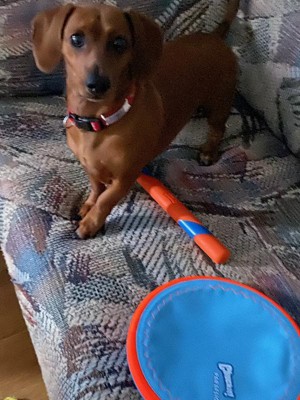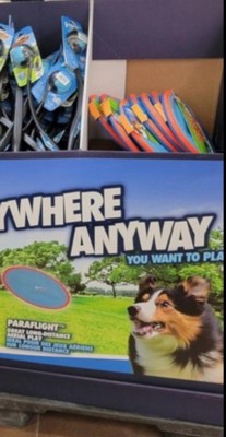 [This review was collected as part of a promotion.] Our store didn’t have the paraflight flyer but they had the smaller frisbee which is still fun! My pup is having so much fun with these toy! He loves chasing after the frisbee and getting a good workout too! Thank you so much for letting him try this! It’s his new favorite toy to run around in the backyard with. It’s very durable and good quality!