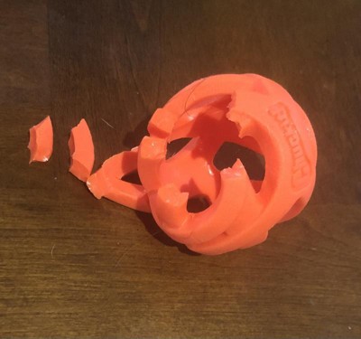 Our dogs lower jaw and tongue got stuck inside of ball. The dog was drooling and foaming at the mouth. The dog was unable to dislodge the ball on his own, we let him try for awhile. We were able to dislodge the ball using welding gloves, however the dog did attack. Unfortunately this happened on a Sunday so it would have been a major ER vet visit. We did not think quick enough to snap a photo, we were focused on a solution for the problem.