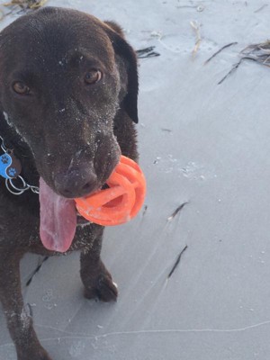 Love this ball! Easy for the dogs to pick up. Even the young pup can easily retrieve.... a wonderful toy well worth the money.