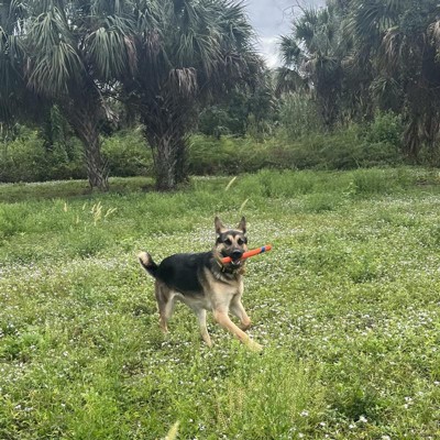 This is the only item that has survive my one year old boxer’s aggressive chewing. She use to be destructive with household items when we left her home alone and this has kept her busy. She still occasionally tears up something she’s not suppose to but she loves her stick! Get it!