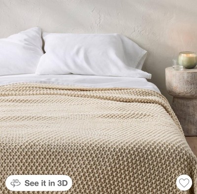 I ordered this blanket online and am dealing with color differences between the actual blanket and the pictures. In real life, “natural” is very light, and has pink undertones. I expected more straw/yellow undertones from the picture. Oh well. The main reason I’m returning it is that the blanket will definitely snag. I decided to take a chance after seeing reviews, but the yarn itself make with has distinct strands in it—which gives it more texture—but will not last in my frequently used guest room. Bummer. Pictured: in real life, and photo from the Target listing.