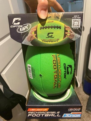 The neon green rechargeable football is a fun pick if you like tossing a ball around after dark. The glow is bright enough to track in the air, and the built-in charging port is simple to use. The shell feels sturdy and holds up to rough play. My only complaint is that the charge doesn’t last as long on colder nights. Even so, it’s an easy way to keep a game going when the sun goes down. My kids love it! Great Christmas or birthday gift. The bright LED lights are impact-activated.