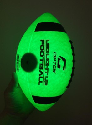 This Cipton LED football is fantastic. The outer is a soft rubber, which is especially nice for those with younger kids, and offers plenty of grip. Your little ones will have no issues hanging onto or throwing this football. The LEDs illuminate the football completely and offers the versatility of playing catch outdoors well into dusk.