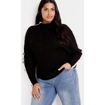 • Model wears a City Chic size XS/14 and is 168 cm in height. Bust: Relaxed fit. Waist: Relaxed fit. Hips: Relaxed fit. Length: This plus size jumper is hip length. Center back measurement: 88 cm/35 inches.