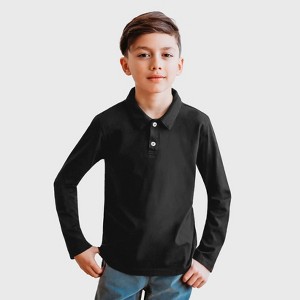 City Threads  100% Cotton Soft Knit Jersey 2-Button Long Sleeve Boys Polo Shirt - USA-Made - 1 of 4