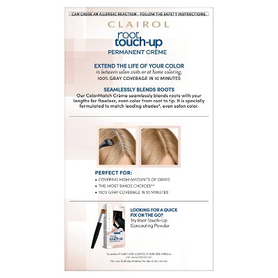 Extend the life of your hair color. Root Touch-Up gives your hair color a boost, covering roots and grays anytime between regular colorings. The targeted Root Creme works in just 10 minutes and matches leading shades -even salon color. Packaging my vary from what is seen on the site but the contents remain the same.