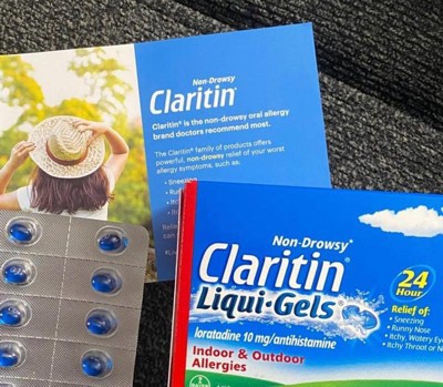 Claritin Liqui-Gels capsules provide powerful, 24-hour, non-drowsy relief of your worst indoor and outdoor allergy symptoms, including sneezing, runny nose, itchy/watery eyes and itchy throat/nose. Claritin provides relief of symptoms that can be triggered by over 200 different allergens. Claritin is an antihistamine, so it hinders the cascade triggered by allergens. For adults and children ages 6+. One capsule contains 10 mg of loratadine.