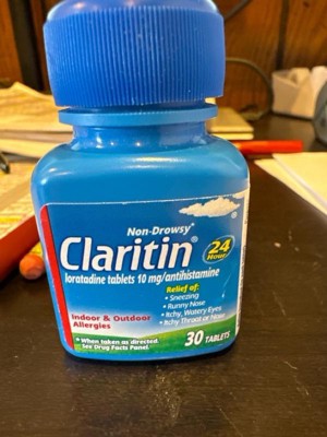 This is clartin. The active ingredient in it is loratadine 10 mg. The claims are relief of sneezing runny nose itchy, watery eyes, itchy throat, or nose. This works most of the time. Someday, it doesn't seem to help very much on those days. It doesn't seem to help the watery eyes in my experience. it takes an hour to 3 hours to become fully active. I never had allergies til 4 years ago. So on the days when this works and I can go about my normal life, it's appreciated. It's one tablet every 24 hours. It's non drowsy as well. I'm testing a different allergies medicine right now that claims to work in 30 minutes. If that works better or worse, I will review that as well.