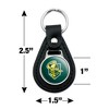 - QUALITY MATERIAL: Our durable round keychain is crafted from leather with a glossy resin-topped emblem featured design shown on one side. Approximately 1.5" (3.8cm) x 2.5" (6.4cm) in overall size, emblem is 1" (2.5cm)..