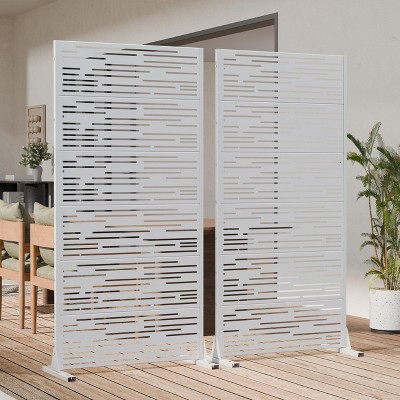 This freestanding decorative screen is designed to enhance your deck, balcony, patio, or any outside area like a lawn or garden. Crafted for durability and style, it serves as an elegant privacy fence panel, adding a touch of sophistication to your environment while providing seclusion. Its robust construction ensures it can withstand the elements, making it ideal for year-round use. Whether you’re looking to create a private oasis or simply add a decorative element to your space, our Metal Privacy Screen is the perfect choice. Upgrade your outdoor or indoor area with this functional and visually appealing privacy solution.