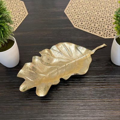 How wonderful it is to be able to enjoy leaves- and not just in the foliage season! This gold leaf dish is artfully crafted by detailed designers. We chose the leaf shape for its practical size and nature oriented design. This dish is so beautiful that it can be enjoyed as a centerpiece without placing anything on it. Dimensions- 10.75”L x 5.5”W x 1.75”W