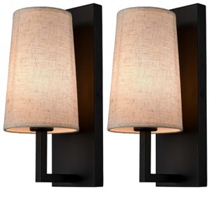 Claxy Black Wall Sconces Sets of Two Modern Fabric Shade Wall Lamps for Bedroom