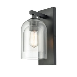 "Flaunting a rustproof black finish, the modern farmhouse wall sconce brings a dash of drama to your interior. Crafted of impurity-free hand-blown clear glass, its double bell shades lend understated elegance and industrial chic to your living space.