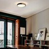 The LED flush mount ceiling lights come with a white acrylic diffuser that allows a soft glow to pass right through, filling the space without any glare. The mix of finishes encompasses both nature-inspired qualities and industrial accent, yet maintains a minimalist vibe.
