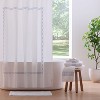 Classic and elegant, the Savoy Shower Curtain by Clean Design Home® x Martex® features a geometric embroidered motif atop a cotton sateen canvas specially woven with unique technology to block allergy triggers larger than 5 microns in size. Clean Design Home® x Martex® is a collaboration with lifestyle expert Robin Wilson focused on creating a collection of bed and bath products to support an allergen-aware lifestyle.