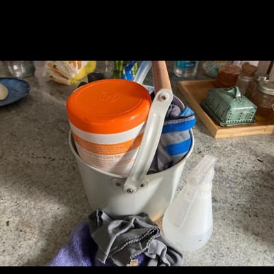 I love how cute this looks! It also fits quite a bit of cleaning material. I love that it’s not plastic so it’s very sturdy.
