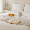 Enhance the appearance of your home with the minimalist style and modern lines of this Lavish Home Clear Acrylic Side Table. When oriented horizontally, this versatile side table can act as a lap desk to provide a convenient work surface for your laptop and papers or an acrylic bed tray, letting you enjoy delicious meals while watching TV. Positioned vertically, the acrylic table serves as a unique nightstand or small side table, offering the perfect place to display ornaments or hold an alarm clock.
