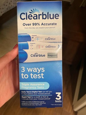 - OVER 99% ACCURATE: All tests in the Clearblue Triple Assurance Pregnancy Test kit are over 99% accurate from the day you expect your period[1]