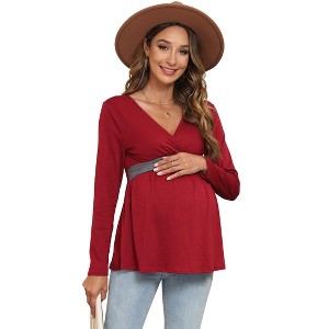 Clearlove Women Casual Maternity Nursing Shirts Wrap V Neck Long Sleeve Top - 1 of 4