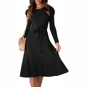 Clearlove Women's Ribbed Knit Midi Dress Long Sleeve Belted Tunic Sweater Dress with Belt Casual Cocktail Party Dress