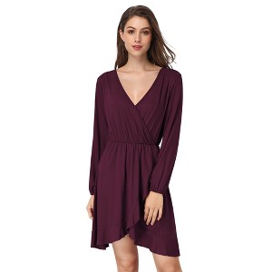 Clearlove Women Spring Tunic Dress 2025 V Neck Casual Tiered Long Sleeve A-Line Swing Mini Babydoll Dress - 1 of 4