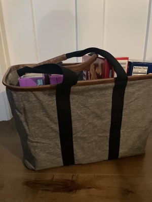 This collapsible tote is great quality, can hold a bunch, and has a nice look. I have been leaving it inside my car and pull it out whenever I need to fill up from a store trip.
