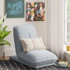 This is the perfect chair for any setting. An office, a living room, a sitting room, a bedroom, a closet. It can fit anywhere. I love how easily it folds up and lays back and it's just super sleek design made out of really high quality. It's very comfortable. The live flat is perfect for a 2 seater bench. The height is absolutely wonderful. The quality is very high-end, it's tougheted and the fabric is easy to clean. Even with dogs, I was able to just wipe the hair off. It doesn't stick to it very much, and then it has these felt v and skid proof option, so it's safe I. Also love that even when in the upright, it doesn't take up too much room. It still is very functional and is a perfect addition to any room.