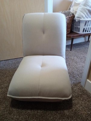 I've been looking for a compact but comfortable chair to add a little pizzazz to my office room. I needed something that was sturdy enough to last, but also multifunctional. The click clack chair fits this description to a T. There's no setup necessary, it comes pre-built. The cushions are firm, but still soft and comfortable. There are three settings per se, one is completely flat, one is semi reclining and one is a 90 degree angle. Changing them is also very easy. You simply lift up the back and it clicks into place. If you want to lay it flat again, you just lift it all the way up to the final clack and it flips back down again. The name fits perfectly. It is low on the ground so there are no legs on the chair. It's perfect as a gaming chair or a relaxing chair. I put it in my office as a chair that I use for reading when I just want to relax since I can adjust it to my needs. I will say, it is a little narrow and so might not be the best chair for someone who's a little larger. It fits me perfectly, but I am a female on the smaller side. The material is a soft suede type fabric that is extremely soft and comfy. It's actually relatively light weight which was surprising to me and easy to move around. I would recommend this chair to anyone looking for an aesthetically pleasing and confortable chair that will go with any decor for a dorm room, office or smaller space.