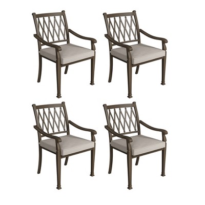 CLIHOME Cast Aluminum Patio Classic Lattice Dining Chairs with Sofa Cushions(Set of 4)