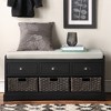 Cut the clutter in your entryway, mudroom, or walk-in closet with this versatile storage bench. Featuring three drawers and three baskets, it offers ample space to keep shoes, hats, gloves, and more neatly tucked away. The soft cushion adds comfort for putting on or taking off shoes. Made from solid and manufactured wood, it¡¯s easy to clean and brings both function and charm to any space.