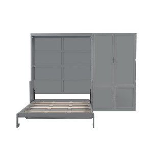 CLIHOME Queen Size Murphy Bed Space-Saving Wall Bed With Closet