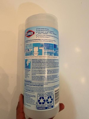 Canister Not Recyclable Unless Label Removed, Beginning of batch code indicates Est. No., © 2023, Wrap - Plastic - Store Drop-off, Recycle if Clean & Dry, Canister - Plastic - Widely Recycled, Disposal: Nonrefillable container. Do not reuse or refill this empty container. Offer empty container for recycling. If recycling is not available, discard container in trash., Clorox is a registered trademark of The Clorox Company., Patents: www.thecloroxcompany.com/patents/, how2recycle.info, Empty Before Recycling, Label - Paper - Widely Recycled, EPA Reg. no. 5813-79. EPA Est. no. 56952-WI-1 (RK); 8251-W1-2 (KW), WI-3 (KV), WI-5 (UQ); 52631-NJ-1 (UW); 62401-NJ-1 (JW), NC-2 (PK);50757-WI-1 (VN); 5813-GA-4 (MR), IL-2 (VF), GA-2(VG); 71681-IL-2 (24).Inactive ingredients