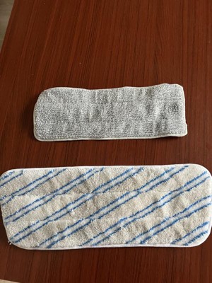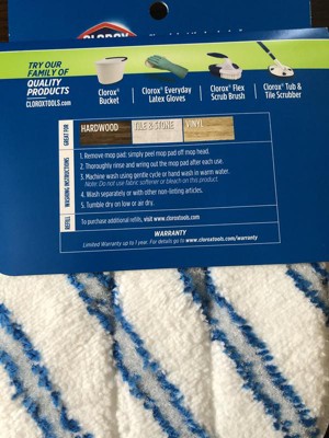 [This review was collected as part of a promotion.] I love having an extra microfiber mop head refill for my Clorox Microfiber Mop, so that I have one to use while the other is in the wash. These mop heads clean up really easy in the washing machine and are ready for more use. I really like that I am not throwing anything into the trash and that these are reusable. I have both wood and tile floors that I have used the Clorox mop on. They are very absorbent and the blue stripes on them are actually "scrubbies" to help get off stuck on messes. They pick up a lot of dirt. I have two little kids and a dog, so we are using it a lot!