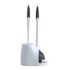 The Clorox Toilet Bowl Brush and Plunger Set is an essential accessory for any bathroom in your house and especially useful in the guest bathroom where it can sit out in the open discreetly yet conveniently. The durable antimicrobial bristles on the brush give you a thorough clean while lasting longer, with a head that's designed to get into areas you want to go. The comfortable handles make these essential tools easy to use. The high quality antimicrobial plunger has a flange cup that helps clear clogs fast and a long handle for better leverage, making it an ideal partner for this important bathroom set. Keeping it all together neatly and cleanly is the handy caddy that stores both in an upright position for easy and quick access. Keep any toilet sparkling clean--great for dorms, apartments, RVs, boats, wherever toilet maintenance is needed.