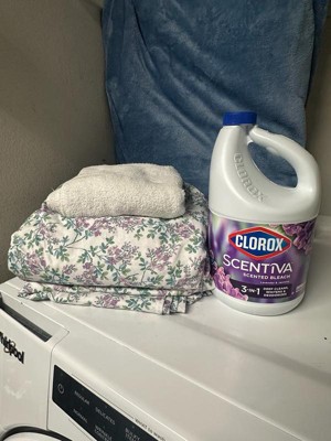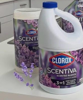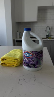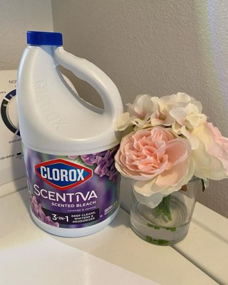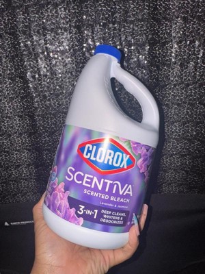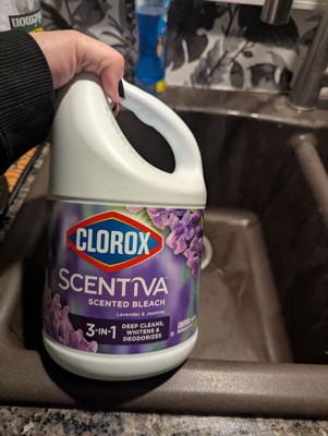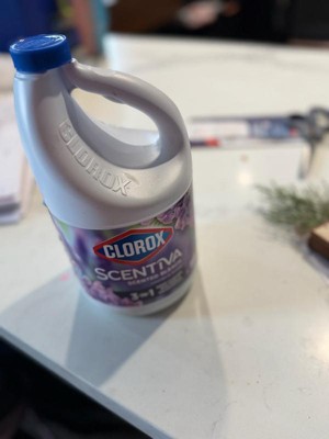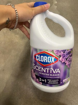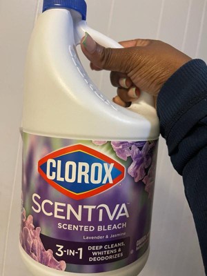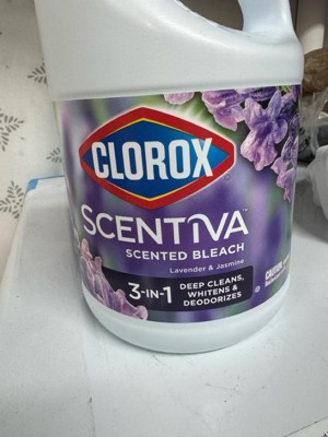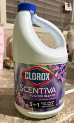 Clorox Scentiva Scented Liquid Bleach combines the effective cleaning power of Clorox bleach with the delightful fragrance experience of Lavender and Jasmine. Clean house and laundry with this powerful five-in-one Clorox liquid bleach that cleans, disinfects, whitens, brightens and removes odors. This liquid bleach cleaner eliminates mold and mildew and kills 99% of viruses and bacteriaincluding strep, E. coli, salmonella and flu viruson a variety of surfaces. Clorox Scentiva cleaning bleach is an ideal addition to your kitchen and bathroom cleaning supplies. Simply dilute this bleach liquid with water to create a bleach cleaner that cleans and deodorizes a variety of surfaces, like floors, countertops, showers, toilets, and kitchen and bathroom sinks. Or, use Clorox bleach with your regular detergent in a standard or HE washer to fights stains, whiten and deodorize bleachable fabrics. Start clean with Clorox. USAGE DIRECTIONS: For Laundry: 1. Sort laundry by color. 2. Add detergent. 3. Fill bleach to max line in dispenser or add 1/2 cup bleach to wash water. 4. Add clothes and start wash. 5. For best results, add to wash 5 minutes after the wash cycle has begun. For Cleaning and Deodorizing: Prewash surface, mop or wipe with bleach solution (1/2 cup Clorox Scentiva Scented Bleach per 1 gallon of water). Allow solution to contact surface for at least 6 minutes. Rinse well and air dry. CAUTION STATEMENTS: CAUTION: IRRITANT. Avoid contact with eyes and skin. FIRST AID: EYES: Immediately rinse with water for 15 minutes.