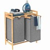 Discover the ultimate laundry solution with the ClosetMaid laundry hamper featuring sliding baskets! This all-in-one laundry sorter and storage shelf is a game-changer for your laundry routine, offering unparalleled efficiency and style. The bamboo frame unit not only provides a spacious top shelf for folding and organizing supplies, but also sleek slide-out charcoal gray laundry bags for effortless sorting. With a robust slide-out system, accessing your items is a breeze, keeping your space tidy and organized. Crafted with durable bamboo, this freestanding cabinet delivers strength and timeless elegance that seamlessly integrates with your home's décor. Elevate your organization game with ClosetMaid!