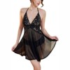 Clotth Women's Alluring Lace Lingerie - V Neck Babydoll Chemise with Adjustable Straps, Lightweight Sheer Nightwear, Black - 1 of 4