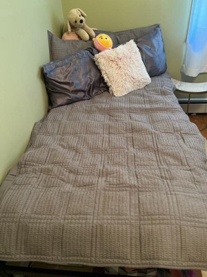 [This review was collected as part of a promotion.] I really like this quilt. The color is a nice grey. It was a good size on our queen bed. The texture is slightly rough, but it looks cute as a decorative quilt. I haven’t had any issues with its durability as of now.