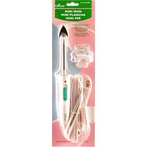 CLOVER-Mini Iron. Set that big steaming iron aside! Quilters and seamstresses everywhere will be reaching for this innovative tool! Mini iron shape head on a lightweight easy-to-control handle is just right for seams. This iron is also great for applique, quick bias techniques, tight spots, paper crafting and more. Iron features a convenient temperature control on the handle with an On- Off switch, an 8ft/2.44m UL listed (E208128) electrical cord, easy glide sole plate (1.25x7/8in), on/off indicator light and a 2x2in cloverleaf plastic stand with rubber sole feet and metal holder. Iron measures 9.5in long by 1in diameter. Imported. WARNING: This product can expose you to chemicals including Di(2-ethylhexyl) phthalate, which is known to the State of California to cause cancer and birth defects or other reproductive harm. For more information go to www.P65Warnings.ca.gov.