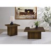 Defined by bold structure and rustic grain, this coffee table set grounds any space with architectural balance. Each table features a thick square top and matching plinth base, forming clean silhouettes with strong visual weight. The dark pine finish enhances organic grain detail across engineered wood and melamine veneer construction. Designed for modern rustic interiors, this set brings cohesion, presence, and long-lasting durability to the room.