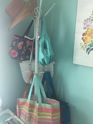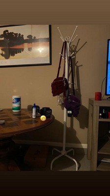 I was thrilled to find a white coat rack, but unfortunately it is not very sturdy and I feel like it will tip over if not balanced well with coats, etc.