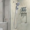 - The hook design allows the handheld shower head to be easily removed or hung from the shower head.