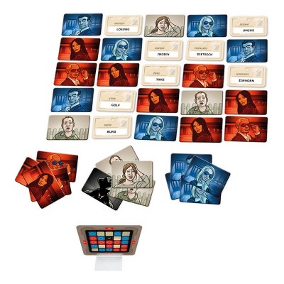 Includes: 16 agent cards in two colors, 1 double agent card, 7 innocent bystander cards, 1 assassin card, 40 key cards, 1 rulebook, 1 card stand, 1 time, and 200 cards with 400 codenames